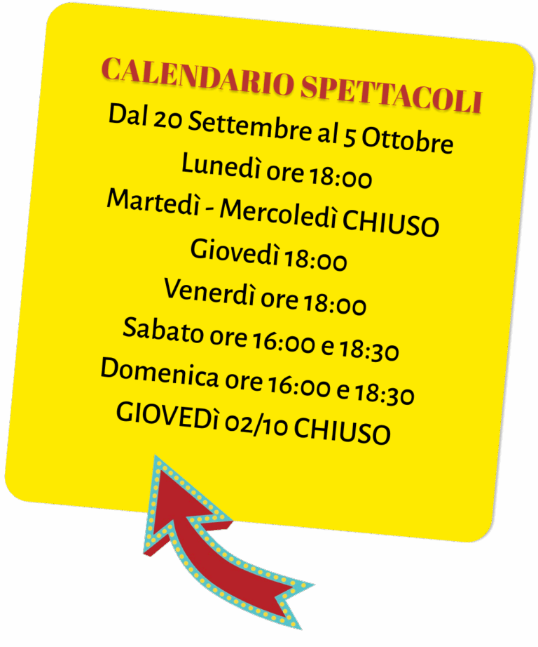 Prezzo bambini si applica dai 3 anni ai 12 anni. Disabili NON autosufficienti non pagano, un accompagnatore prezzo RIDOTTO. Disabili autosufficienti prezzo RIDOTTO. La biglietteria apre un’ora prima di ogni spettacolo.
